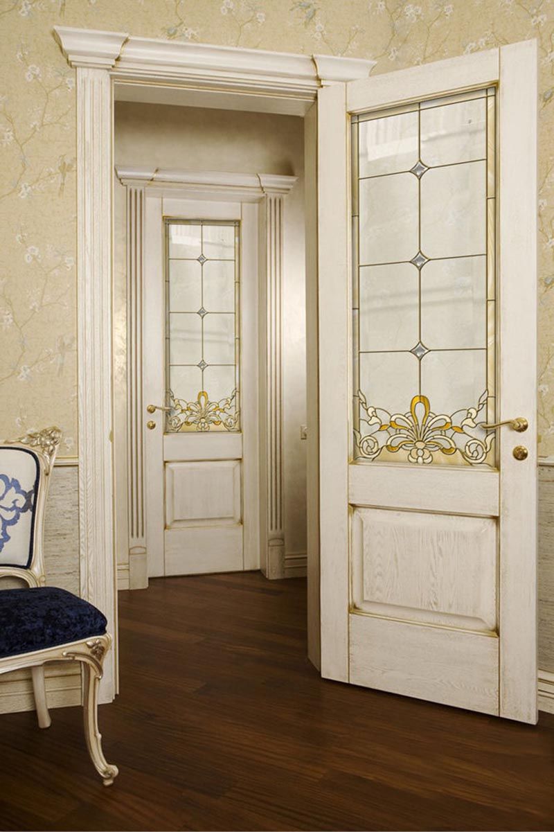 11. Cửa gỗ kết hợp kính họa tiết cổ