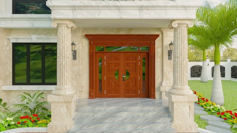 Hiện tại, mẫu cửa này được sử dụng rất nhiều trong nhà vườn nông thôn, biệt thự, nhà phố. Tùy phong cách và độ rộng của cửa, bạn có thể điều chỉnh chiều ngang của cửa sao cho phù hợp.